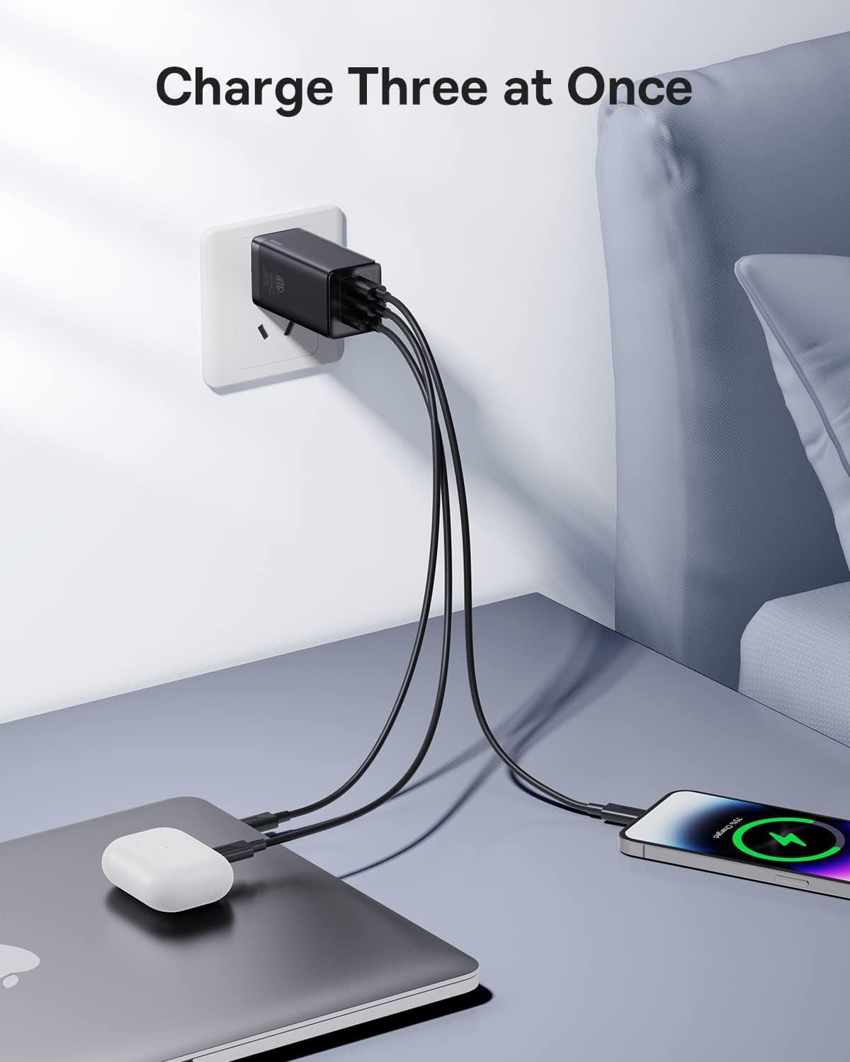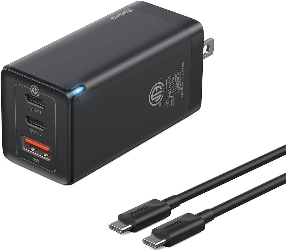 - Lo que obtienes: Baseus 65 W PD GaN USB + 2 puertos tipo C cargador de pared